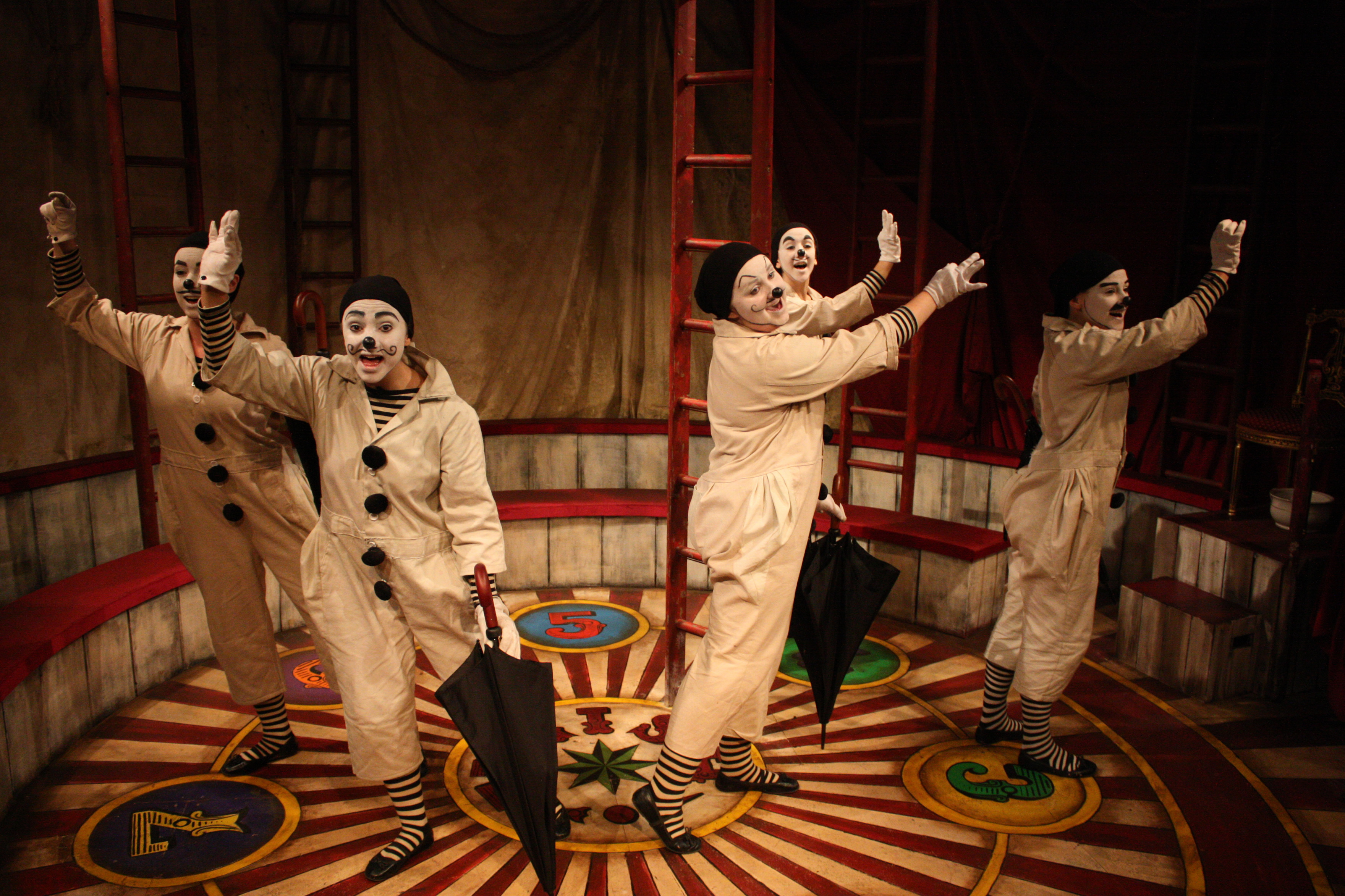 Set in the smallest Big Top I’ve ever seen the story is ultimately one of class struggle between the portly officious “Sir” (Oliver Beamish) and the threadbare hungry-eyed “Cocky” (Matthew Ashforde). These two are engaged in an absurd game of hopscotch with ever-changing rules to ensure the upper-hand of the upper-class. The competition is followed throughout by a chorus of “urchins” part-mice, part-Pierrot who provide dazzling support for whichever player takes the lead.