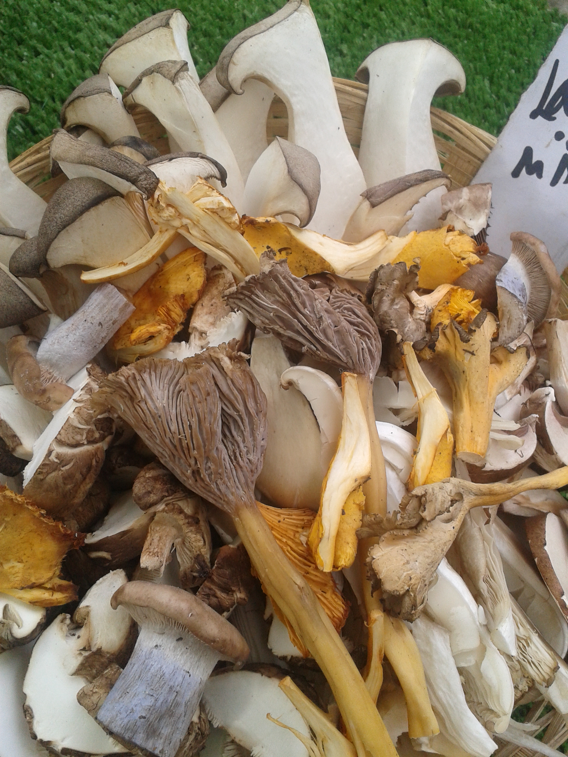 Tom uses breathable plastic and brown paper bags, so the mushrooms don’t go mouldy and don’t dry out. He’s also cheaper than Tesco, offers “more flavour” and “more benefit”. His mushrooms are also of a far wider and wilder variety…
