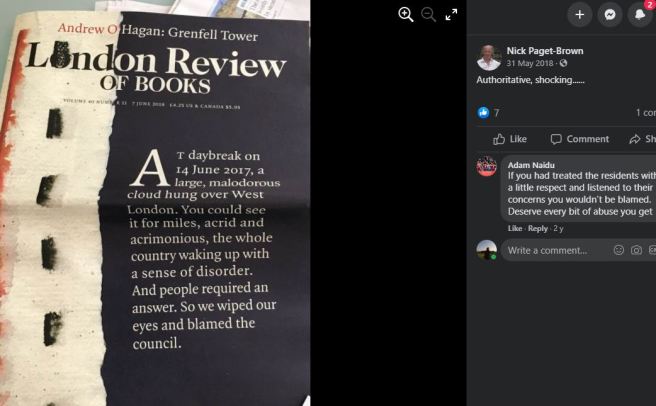 Paget-Brown is an individual lacking in self-awareness. Setting up a company so soon after the atrocity, positioning himself as a middleman between private interests and councils, and giving one interview, for the contemptible LRB essay, indicates somebody not in the habit of taking responsibility.