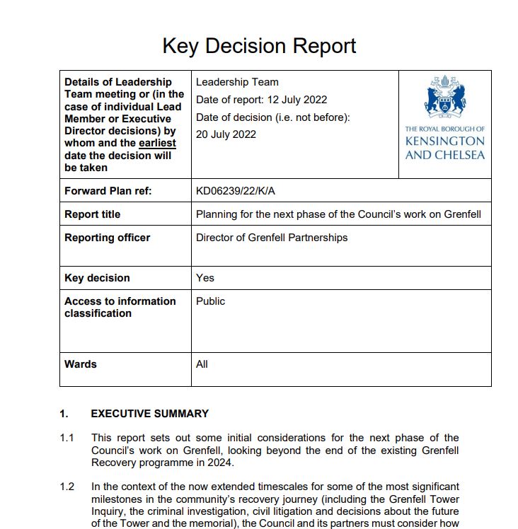 KDR – Planning for the next phase of the Council’s work on Grenfell