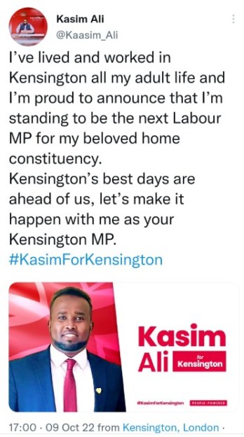 Kasim Ali told us that the Black History Month intervention was triggered by a rival candidate complaining that the event would give Ali, the only Black candidate, an unfair advantage in the constituency selection. Cllr Ali complained to London Region about being barred from the meeting but has not received a reply.