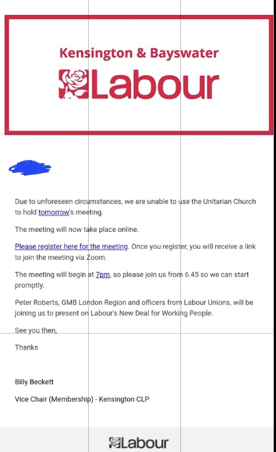 In an email sent to local members and seen by Urban Dandy, the party blames “unforeseen circumstances” for the cancellation of the in-person meeting. One of the speakers at the online meeting will be from GMB, the trade union that issued a statement two weeks after Israel had launched its massacre, carefully avoided naming Netanyahu’s apartheid government as the perpetrator.
