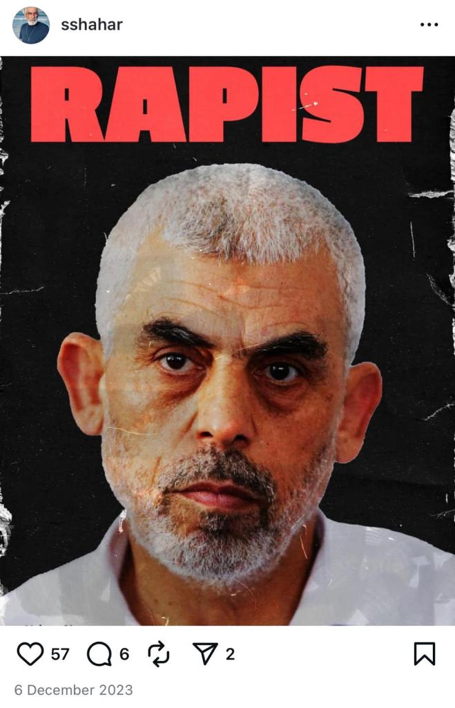 On his Instagram page, Segal has posted Zionist lies that have been used to dehumanise Palestinians and justify genocide, including the notorious false claim that Hamas raped Israeli women and babies.* In reality, it is the Israeli army that has carried out systematic rape of Palestinian prisoners; another example of accusation as a projection of guilt by an Israeli official.