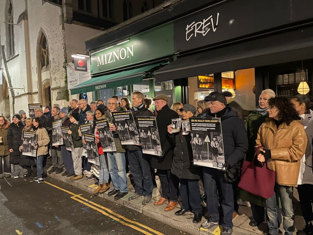 Hoodhub’s Erev video shows a gathering outside the restaurant on a cold January night. Members of the right-wing, non-Jewish Zionist organisation Our Fight UK who had abused protestors at Erev last year can be seen in the post.